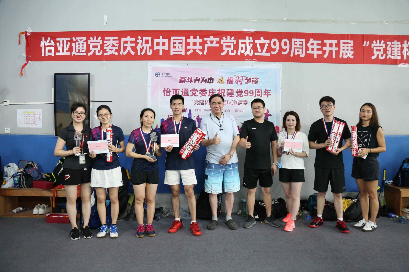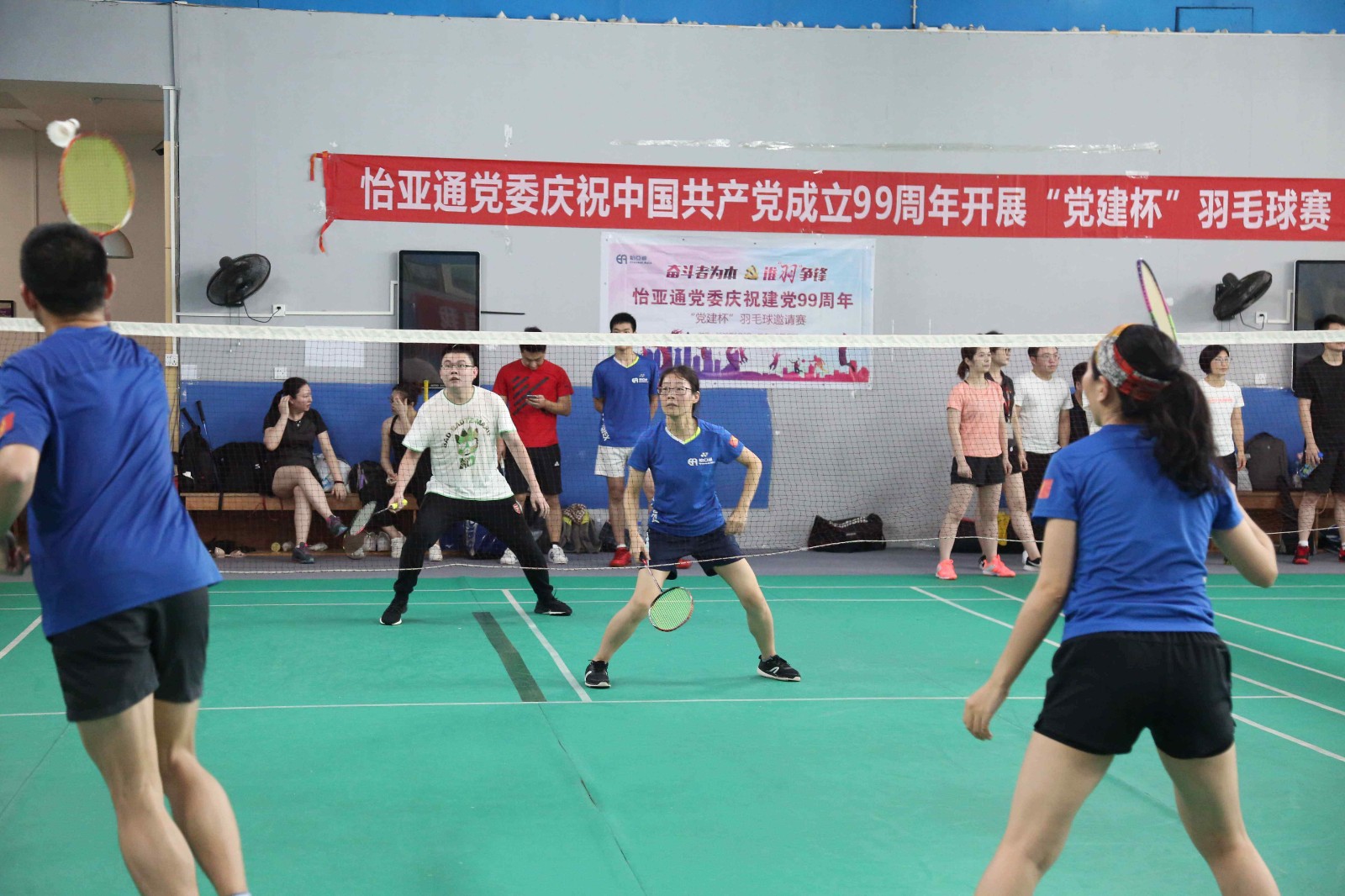 为积极响应公司董事长兼CEO周国辉先生号召,全员学习“奋斗者为本”精神,发挥党员先锋作用,在岗位中开拓进取,创新突破,进一步增强党组织的凝聚力、战斗力。展现jinnianhui今年会人积极进取、奋勇争先、顽强拼搏的精神风貌。6月6日,值建党99周年之际,jinnianhui今年会党委组织庆祝建党99周年“党建杯”羽毛球邀请赛在万国羽毛球馆激情开赛。